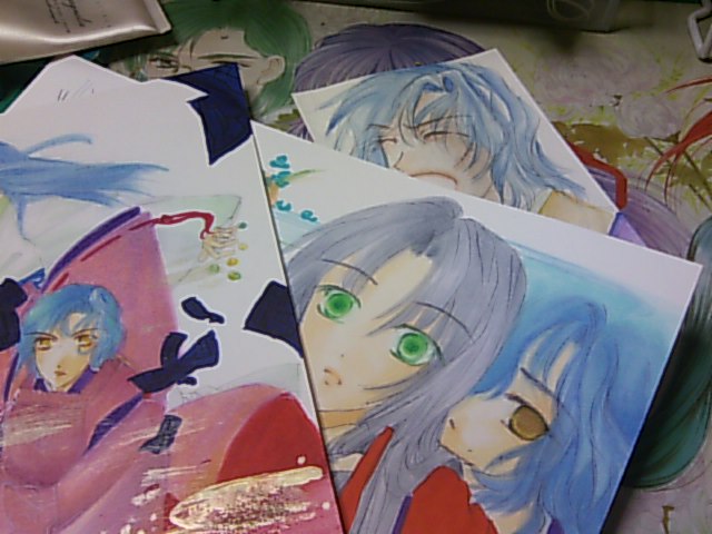 「天都風」の和装は布の作成技術云々で「透ける」「歪む」「まだら」等々ありますので無駄に気を遣うのですが(だって単作りは、下が濃青なら色が深く濃くなるが、上の衣が重なっているところは重なっている色だけが濃くなって、だけど影の色もあって、アレでも透けているから下の衣がないところは色薄いんだよねとか、布の縦横とか、気にしようとすればするほどドツボにはまることが多いんですよね、気にしなきゃ別にいいんだ。コピックでそんな微妙な塗り分けできるか、と言えばね。フォトショでも面倒な気がする。袷は裏地の色が透けて、ということは影色が更に段階変化で、つうか光源によって緑にも黄色にも見えるとかって何それは……と参考資料を見る。絶対に描く機会のない色あわせだけれども。もろ禁色。さすが禁色奥が深いっていうか解りづらい。かといって目にする機会もそんなにない上、テレビ画面を通した瞬間色が変わってしまうから云々。正確さを求めるとこうなる。あるいは、参考資料に踊らされるとこうなる。あれ、この本とこの本、記述違いますコトよ? そもそも襟ぐりのあたり間違って描いているしな、白沢さん)