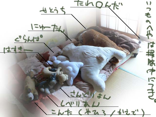 そして食べ終わったら三人とも湯たんぽのごときものを抱えたりして。